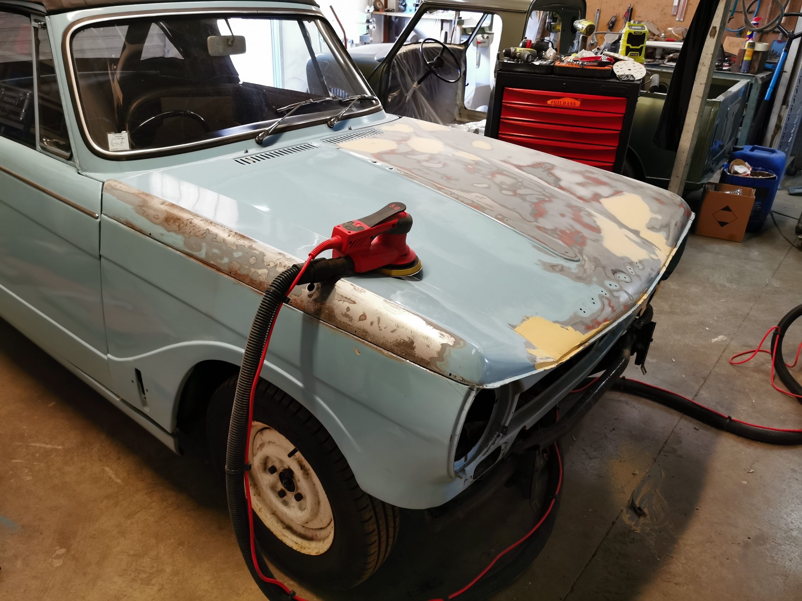 Reprise peinture masque avant Navigation albumPrécédent Album précédent :JAGUAR TYPE E S2SuivantAlbum suivant :MG B ROADSTER MK2
