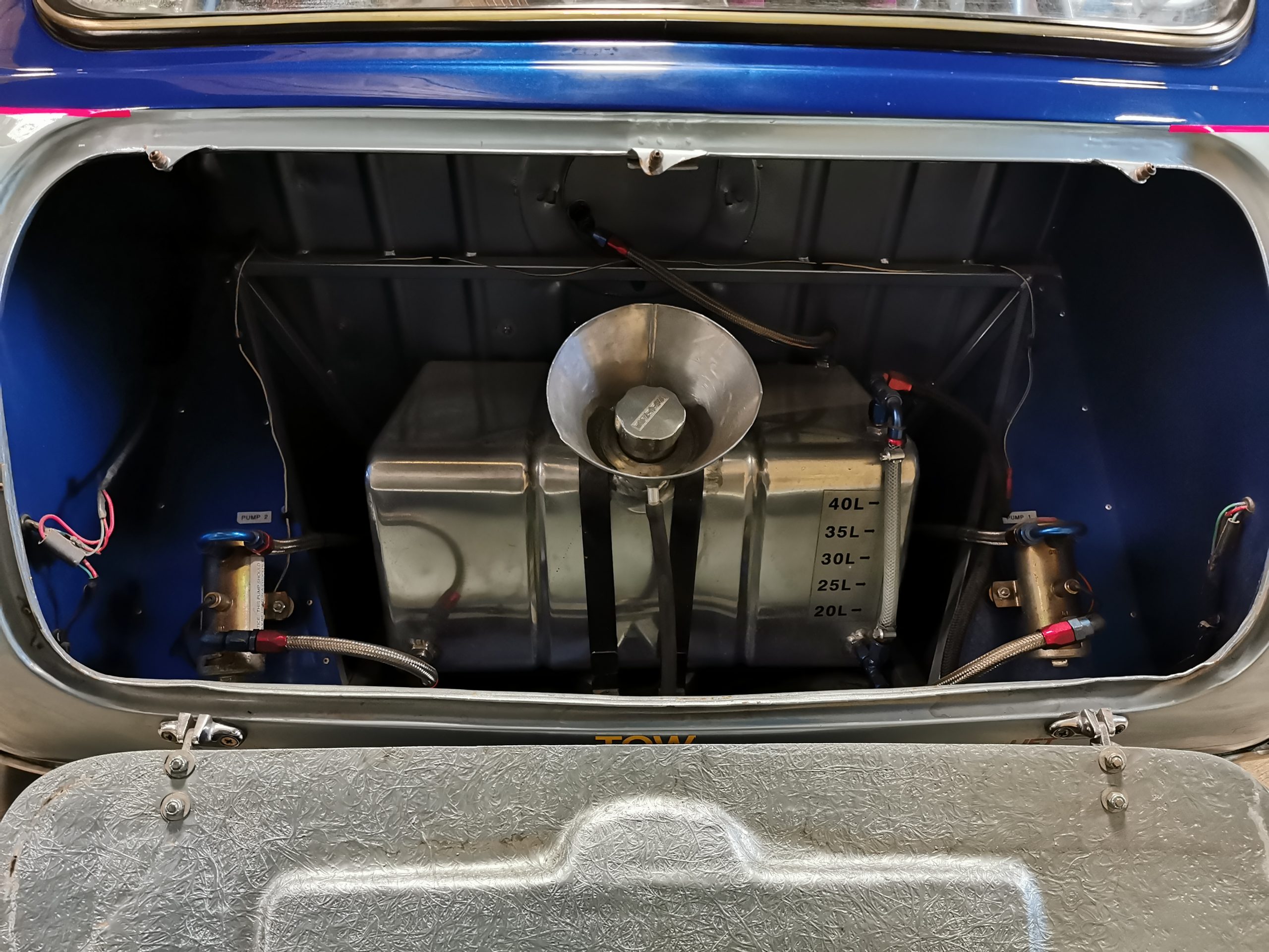 Le plancher du coffre a également été modifié afin d’abaisser le centre de gravité du véhicule et y intégrer un réservoir en aluminium de 45 litres