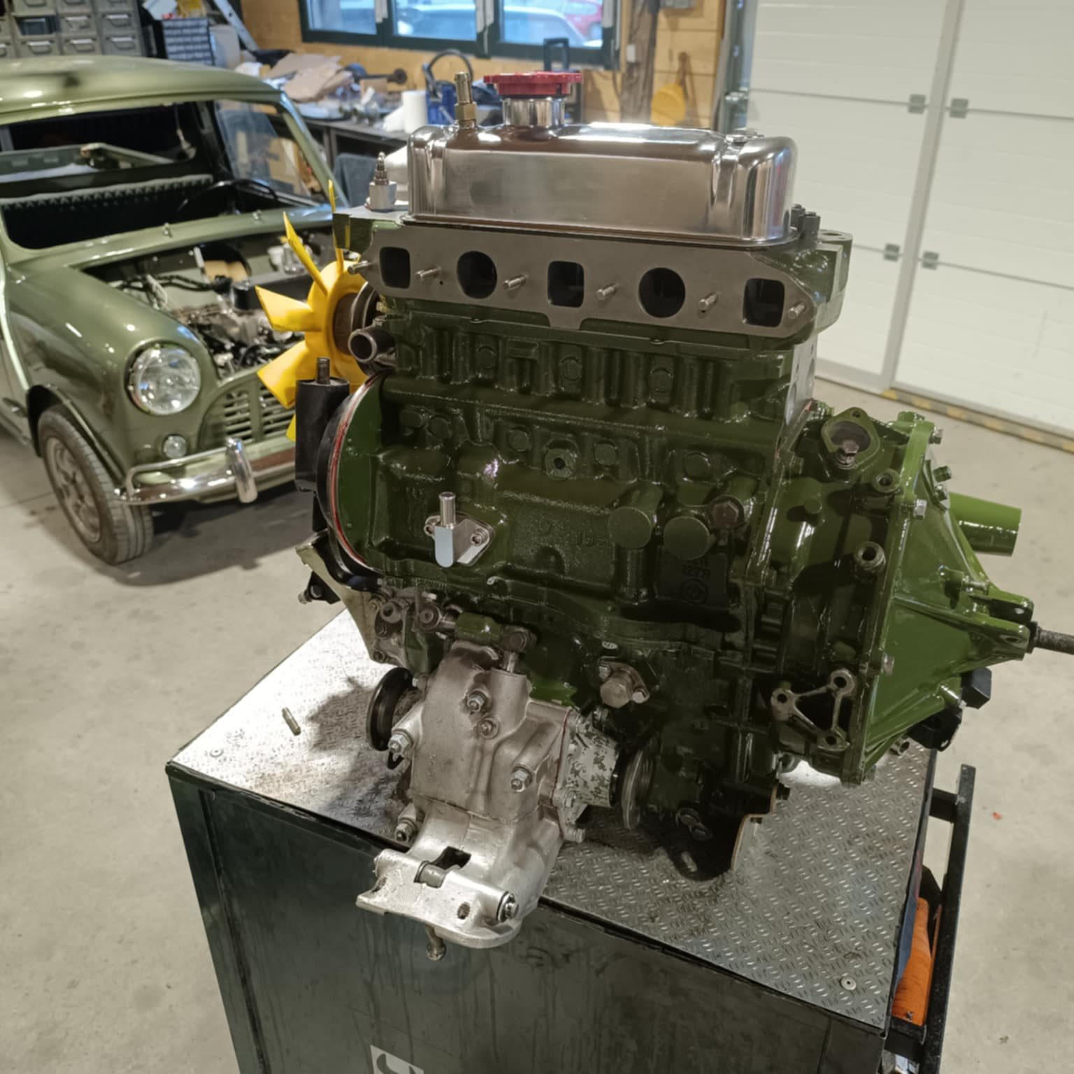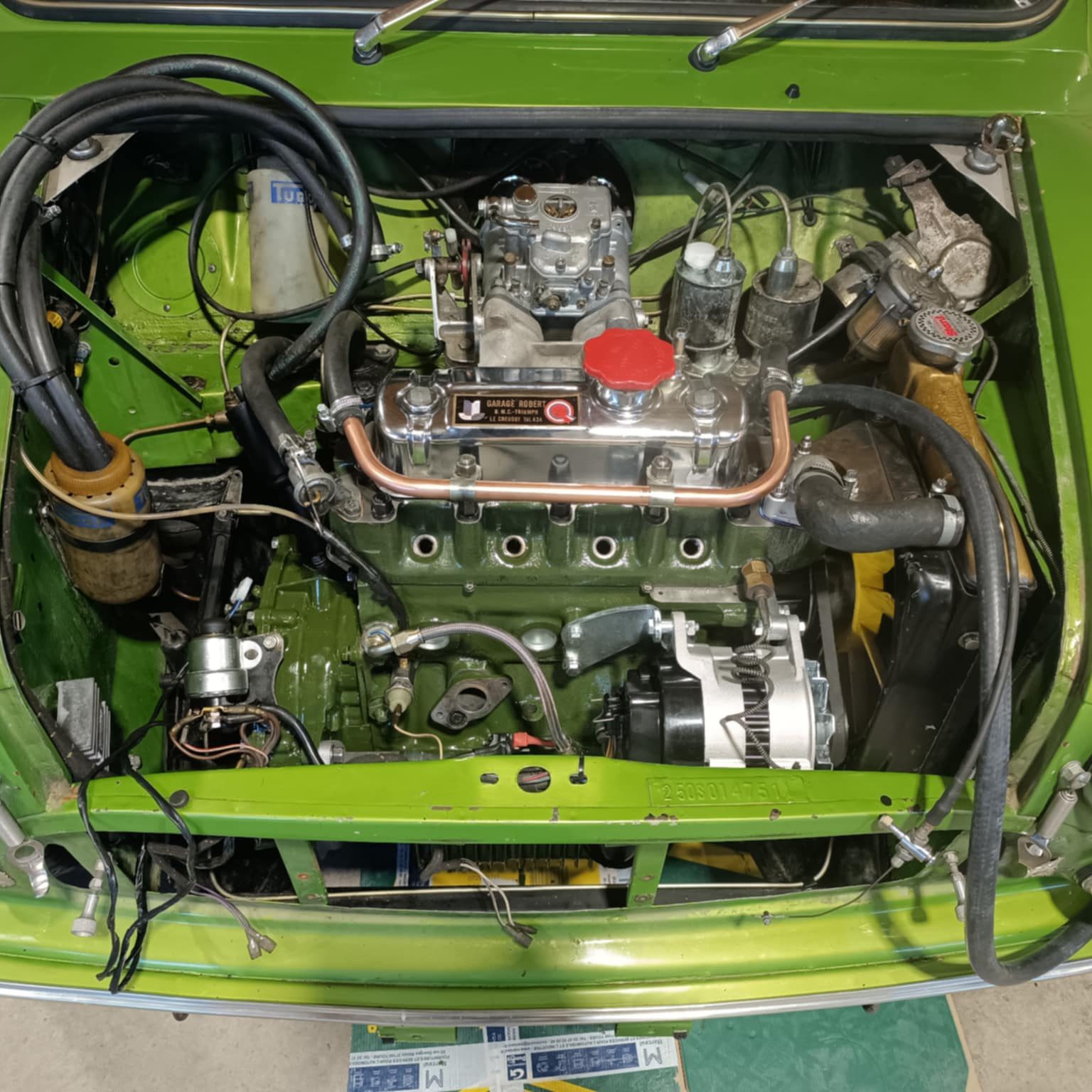 Moteur 4 cylindres 1293 cm3 tout juste refait alimenté par 1 carburateur Weber
