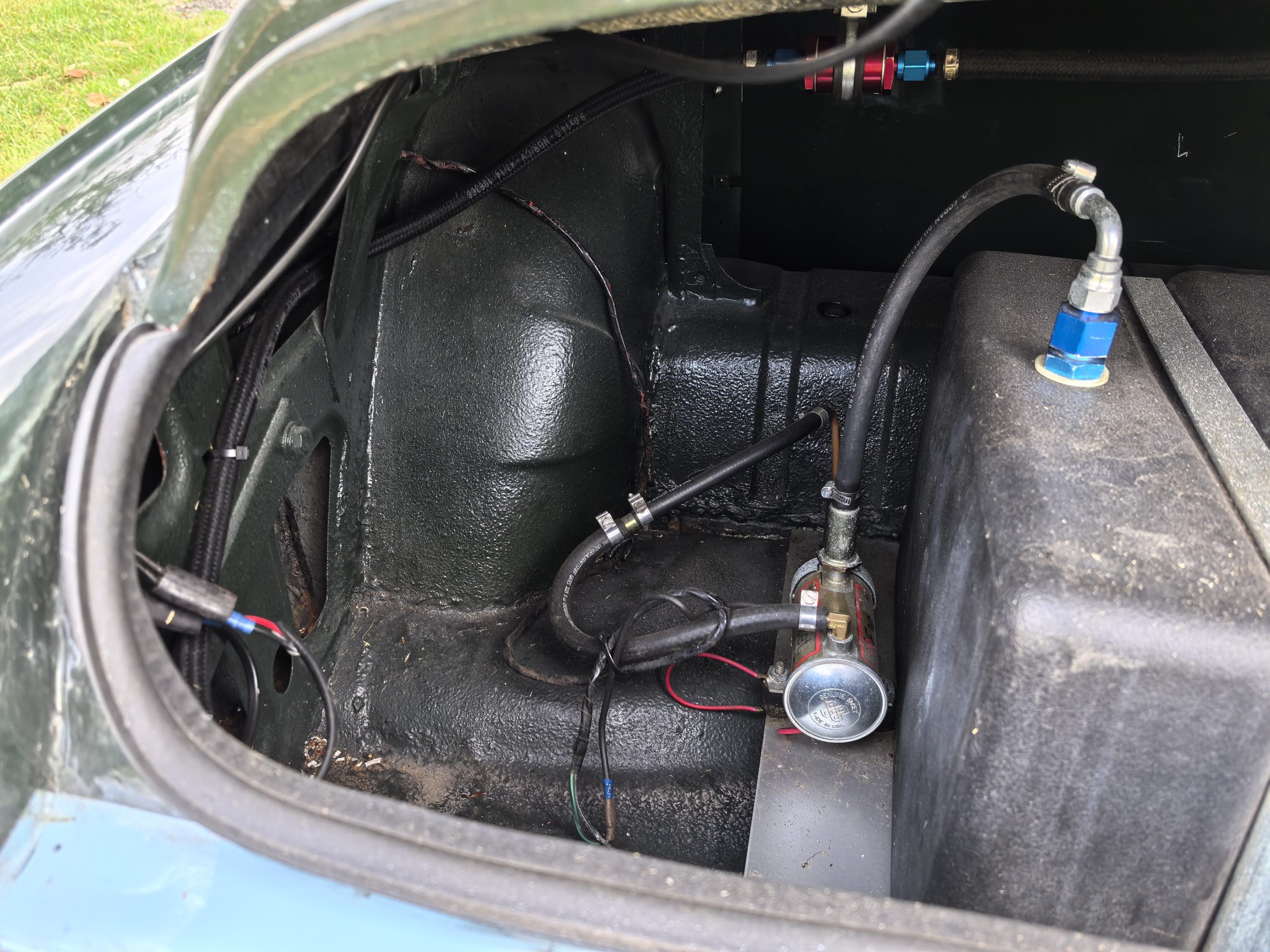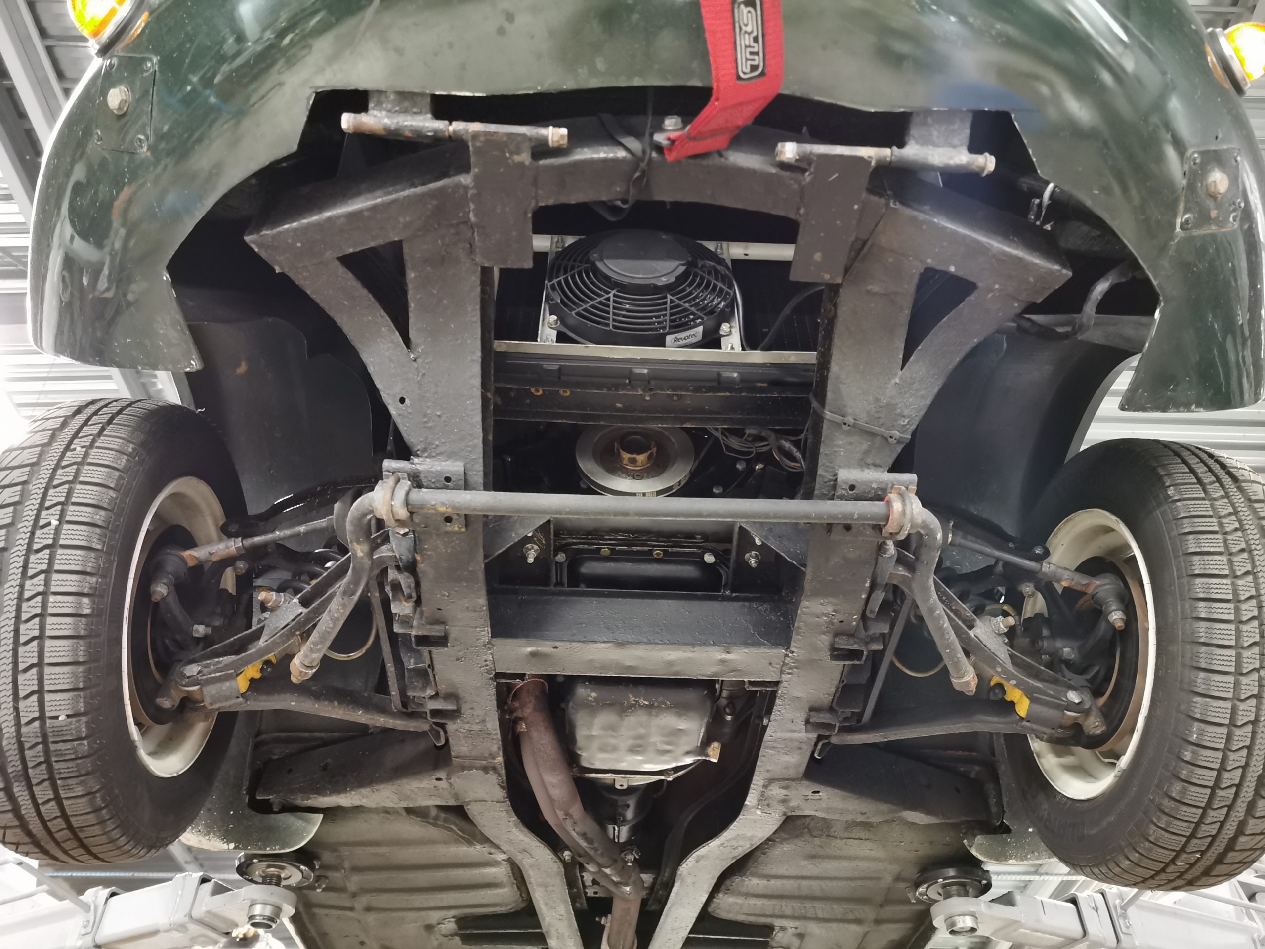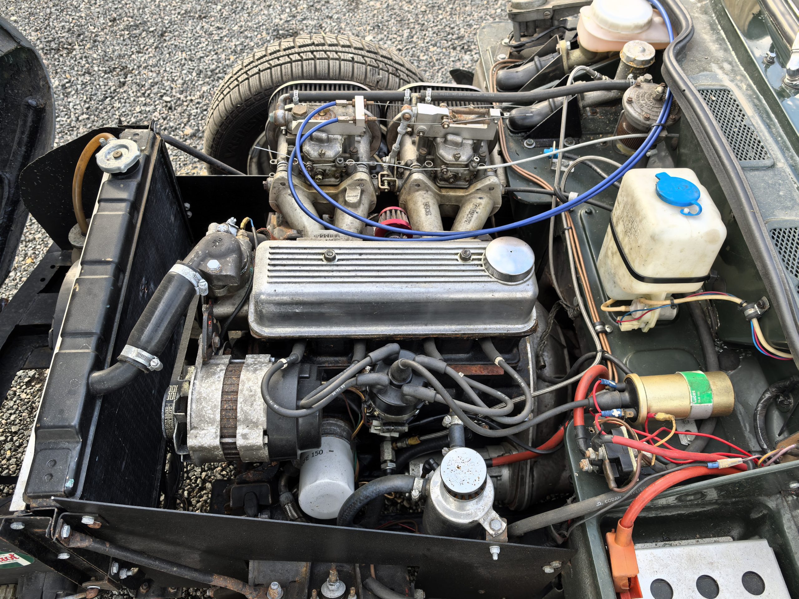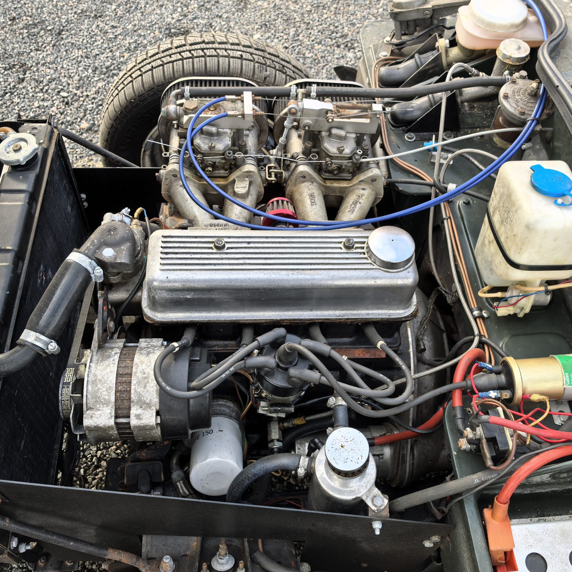 Moteur préparé, 4 cylindres 1320 cm3 alimenté par 2 carburateurs Weber de 40 (fiche de puissance à 103 CV révisé en 2018)