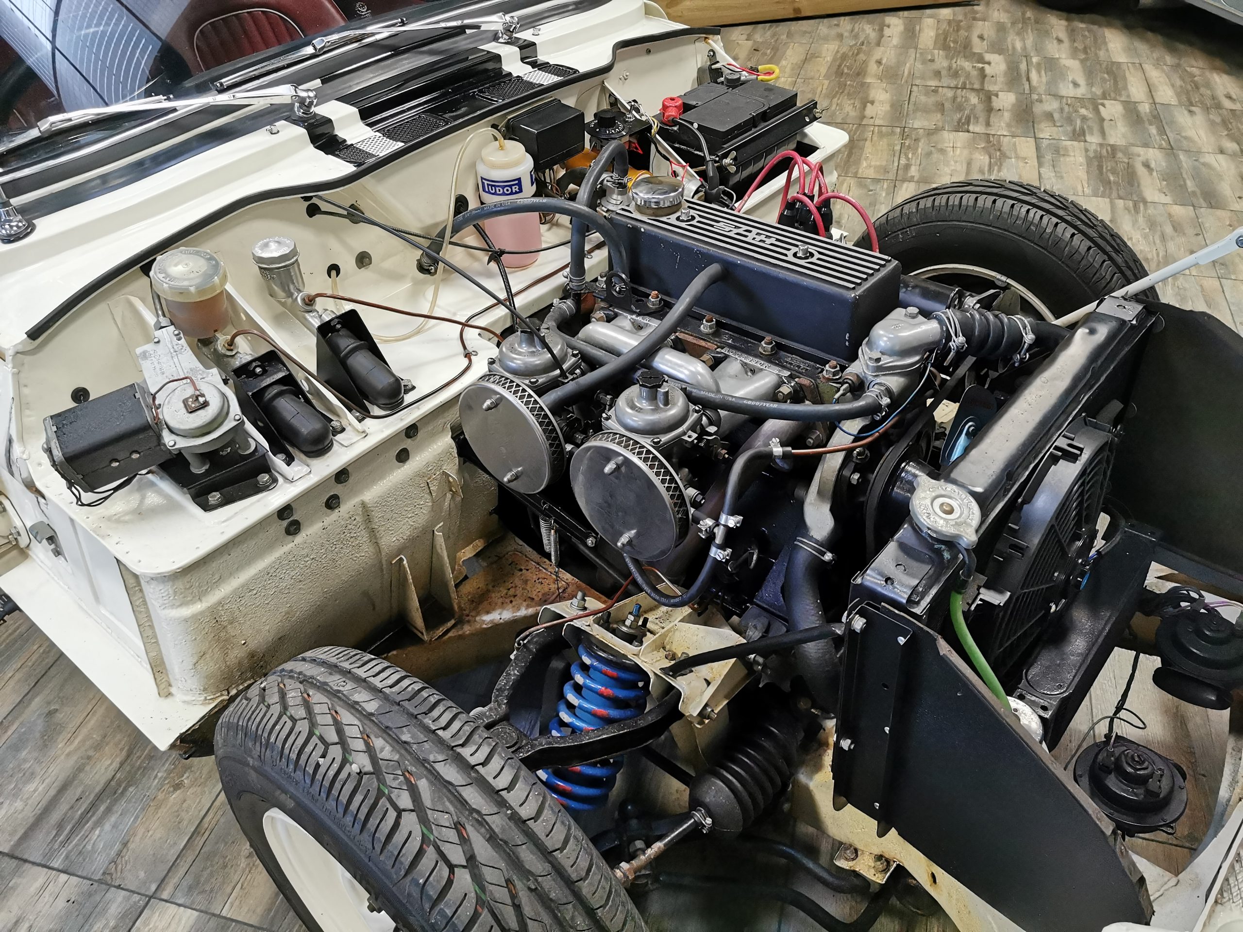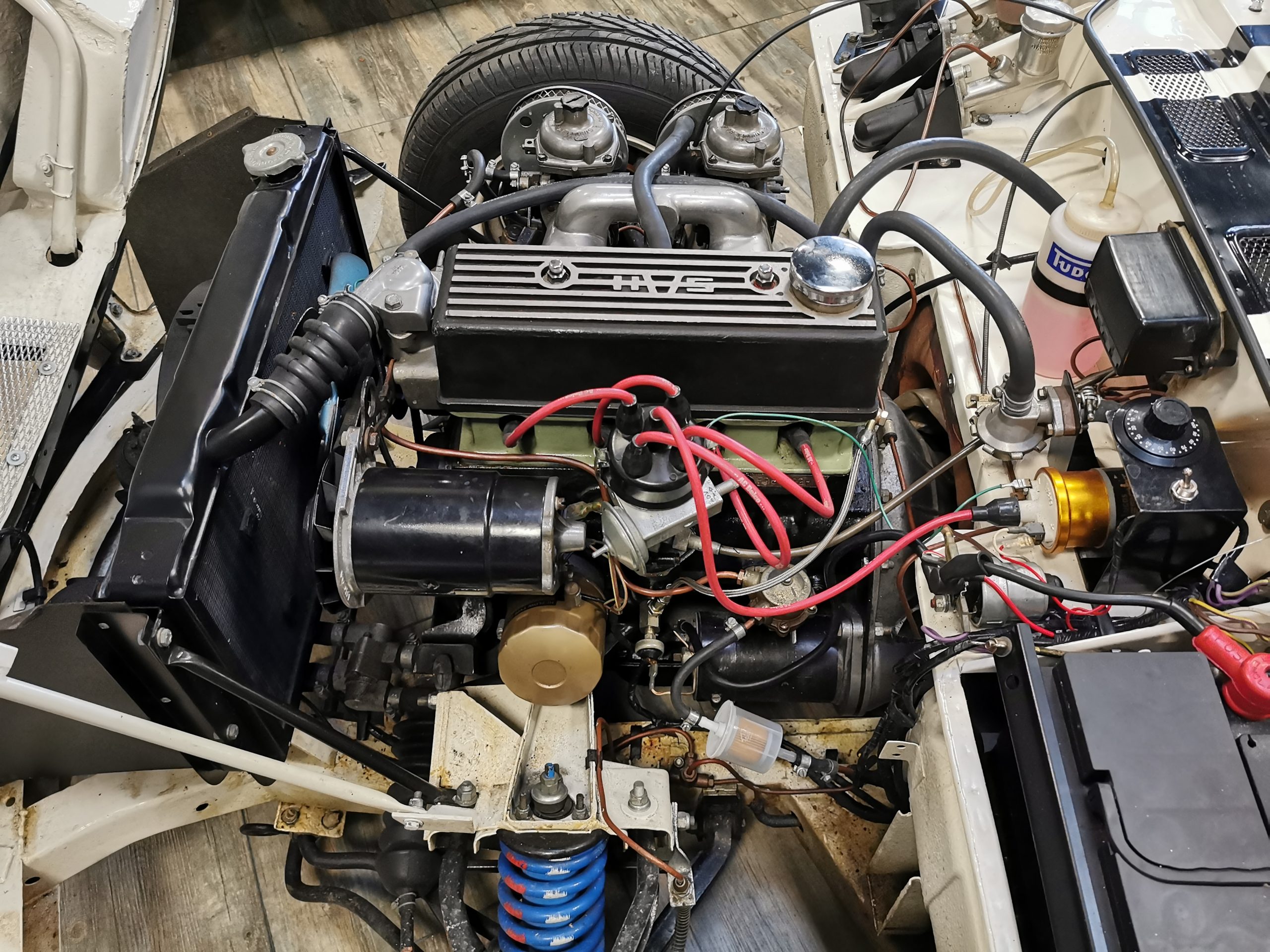 Moteur 4 cylindres 1296 cm3 alimenté par 2 carburateurs Stromberg